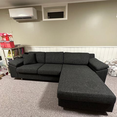 Tusjflekk bak ene ryggpute, godt mulig denne blir borte ved vask av trekk. Ikke synlig med mindre man snur puten.