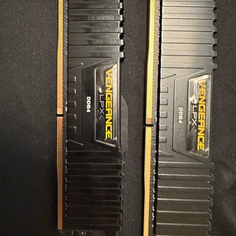 Corsair Vengeance DDR3 RAM-moduler med totalt 32GB kapasitet, svart farge. Passer for oppgradering av PC-minne.