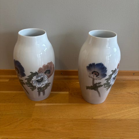 Vasene er helt ubrukte og fremstår i svært pen stand. Begge har original Rörstrand-etikett.