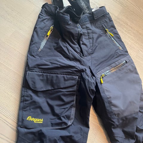 Pent brukt skibukse, og mye bruk igjen. Den har synlige skader nede på buksen.snøstopper rundt beina.