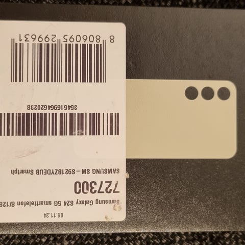 Samsung Galaxy S24 med 128 GB lagringskapasitet i marble grå farge selges.