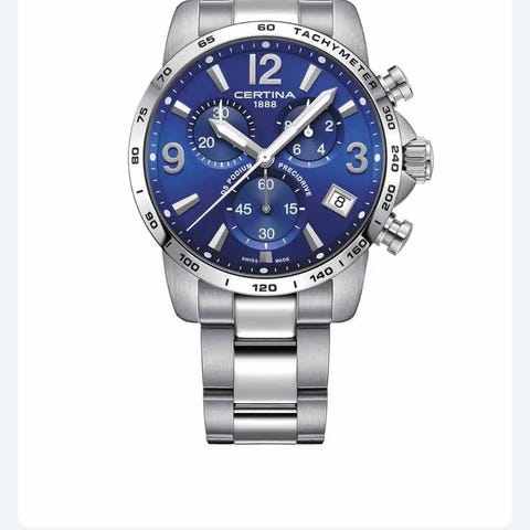 Nypris i dag kr 10 295. Selges rimelig grunnet skade på glass (over bezel venstre v. 50) og at batteri må byttes.