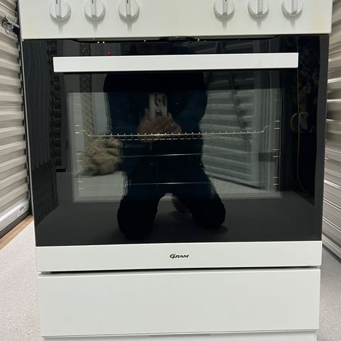 Bredden er 60cm, og høyde fra topp til gulv er 85cm, og dybde Dybden er 60cm.