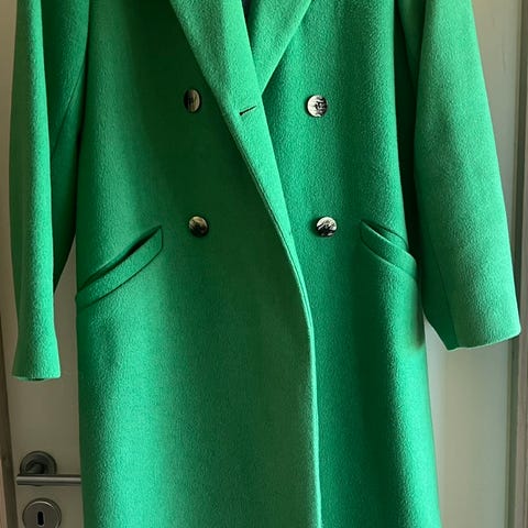 Ganni ullkåpe i størrelse M. Kåpen er grå og laget av ullmateriale. Den har lommer foran og belte i livet for justering. Den selges ettersom den aldri blir brukt. Brukt én gang.