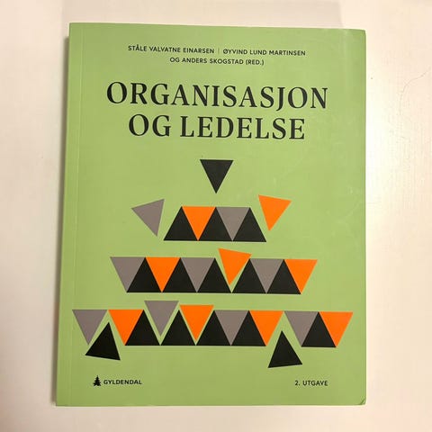 Selger min pent brukte bok: «Organisasjon og ledelse». Boken er bare brukt ett semester, og har ingen bruksmerker.