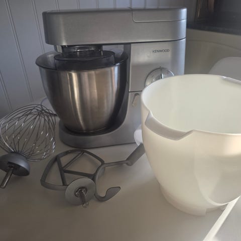 I tillegg til deigkrok, ballongvisp og K-krok har den ekstra bolle i rusfritt stål, plastdeksel, samt iskrem-bolle.