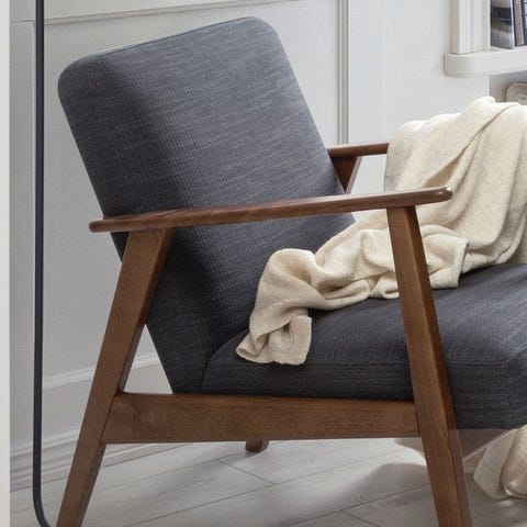 IKEA Ekenäset lenestol i retrostil, grått trekk med treverk i valnøtt. Utgått farge. Noen bruksmerker på treverket (se bilder), ellers ikke synlig brukt.