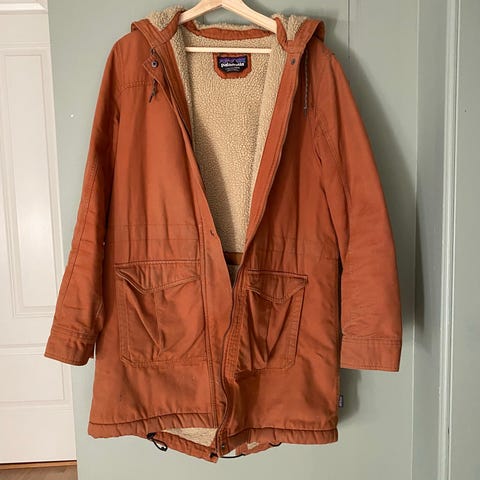 Patagonia parkas i størrelse M for dame, farge grønn. 3 i 1 jakke. Vanntett ytterste lag. Innerste del er foret med dun. God og varm jakke. Innerste del av jakken kan tas av, festes med glidelås. Noen få bruksmerker, se bilder.