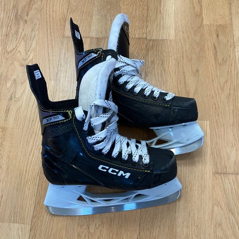 CCM ishockeyskøyter for barn i størrelse 35. Skøytene er designet for bruk innen ishockeysporten og har svart og hvit farge.