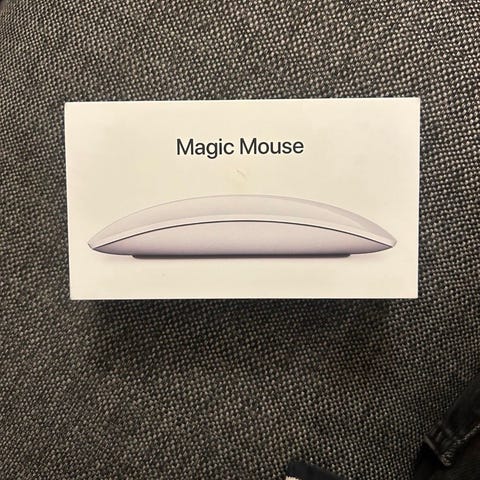 Apple Magic Mouse tilleggsutstyr. Trådløs mus med flate, berøringsfølsomme overflater for navigasjon og kontroll. Kompatibel med Mac-enheter og designet for komfortabel bruk.. brukt lite kjøpt høst 2025 på Elkjøp