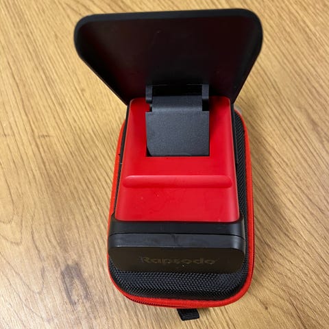 Square Golf Launch Monitor med metalbeskyttelsesetui. Enhet for måling av golfslag, designet for å gi data om ballens hastighet, vinkel og andre viktige parametere.