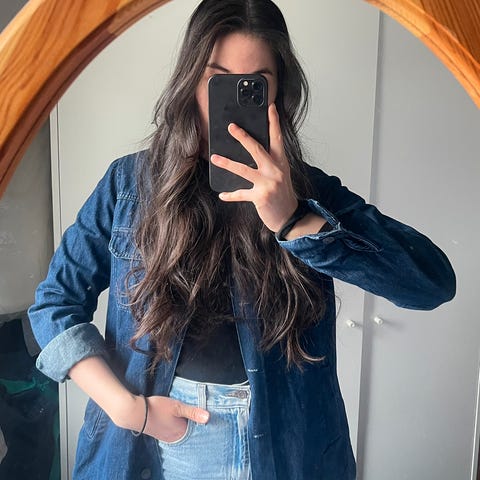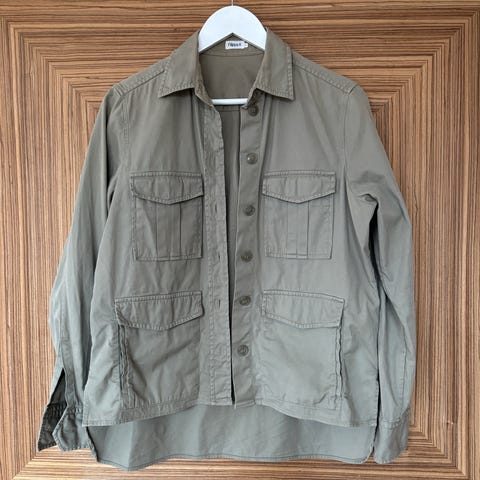 Mango dongri jakke i størrelse M, laget av 100% bomull. Jakken har grønn farge og er designet for kvinner.