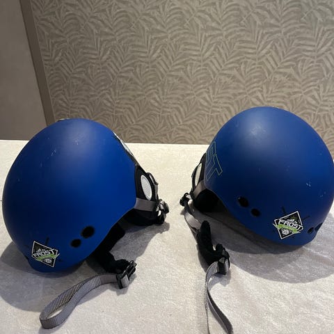 Frost V4 Escape hjelm i størrelse M (54-58 cm), blå farge. Hjelmen har ventilasjonshull og justerbar passform med ratt bak. Egnet for bruk ved vintersport og aktiviteter som krever hodestøtte og beskyttelse.