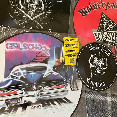 Selger en pakke med 10 hardrock-plater, hovedsakelig amerikansk rock.