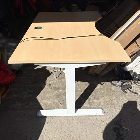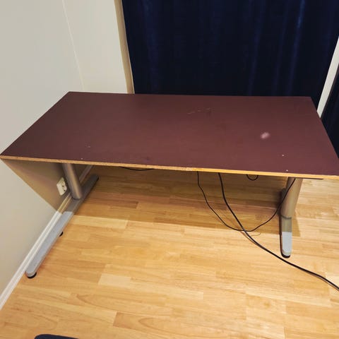 Jeg har heve senk bord som brukes på kontoret. Bordene er uten plater. Du kan kjøpe bordplaten fra Ikea, kanskje.