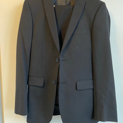 Dress fra Dressmann. Slim Fit dressjakke størrelse 44 short. Svart jakke og bukse i ull og polyester. Bukse str 29-32. Pent brukt i to anledninger.
