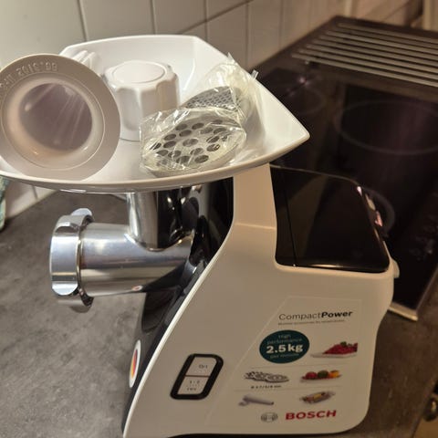 Helt ny Bosch MFW2510W kjøttkvern, juicemaskin, pølselager