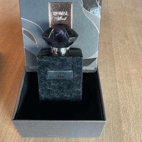 - Montale Intense Oud parfyme med en innholdsstørrelse på 100 ml. Flakongen har en svart og lilla farge.