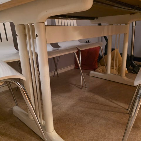 Stolene har vært pusset og malt. Stoltrekkene er originale.
