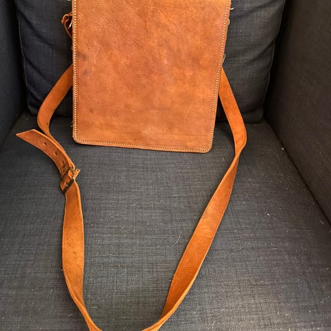 Selger vintage brun skinnveske som er godt brukt, men har mye bruk igjen.