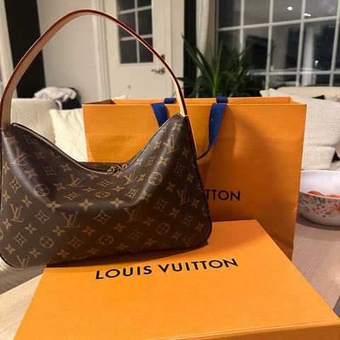 Louis Vuitton dameveske laget i lær. Vesken har klassisk monogrammønster med lyse lærdetaljer, to håndtak og lukking glidlås og med klaff og vridlås. Egnet til daglig bruk og har et romslig hovedrom for oppbevaring. Både vesken og lommebok ble kjøpt i LV butikk i Oslo med kvittering.