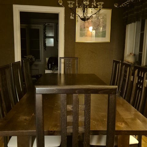Pent brukt bord og stoler til salgs