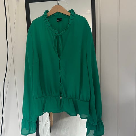 Gina Tricot topp sennepsgul farge, laget av polyester. Toppen er i størrelse 38