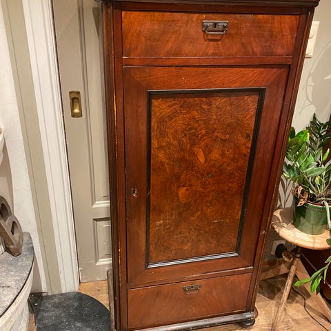 Forrige eier av pidestallen fortalte at den var rundt 100 år gammel. Under står det hvilken gård den opprinnelig var fra, vanskelig å tyde, men muligens Hvidtsten/Hvitsten gård.
