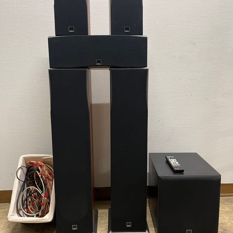 Hifi høyttaler kabler og subwoofer kabel medfølger.