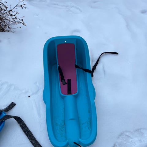 Akebrett for de minste. Har satt på et morgenkåpebelte på akebrettet. Dette kan selvsagt tas av