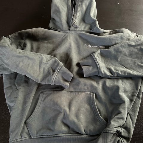 Holzweiler hettegenser i størrelse M for herre. Genseren er laget av bomull, lys grå med en lime green Logo på brystet