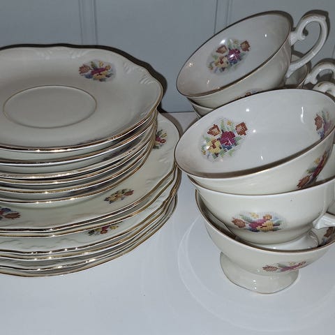 GAMLE DESSERTTALLERKENE i ROMANTISK STIL- 6stk.+1