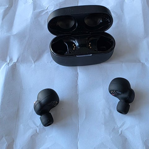 Sony WF-1000XM3 trådløse hodetelefoner med støydemping. Inkluderer ekstra ørepropper i flere størrelser. Leveres med ladeetui for enkel oppbevaring og lading.