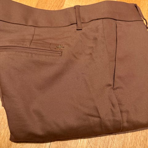 Mos Mosh bukser i blå farge, størrelse 44 for dame. Laget av bomullsmateriale. Bukser med enkel design og lukkemekanisme foran. Selges billig da den mangler en knapp foran