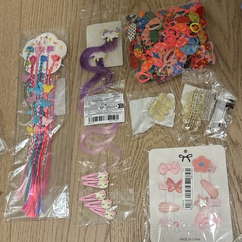 Selger to Hello Kitty-mapper fulle av div hårpynt.