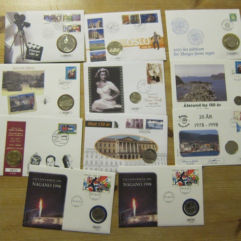 TILBUD stor mengde myntbrev til under 12kr pr stk! - Kasse med 85 brev