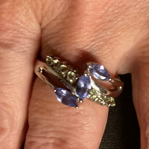 Vurderer å selge denne vakre ringen med en stor Skye blue topas sten og bitte små diamanter på klørne 0,03 ct med TW si kvalitet.