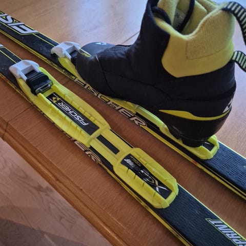 Fisher Sprint Crown langrennsski, lengde 140 cm. Med Fisher Tour step in jr bindinger.