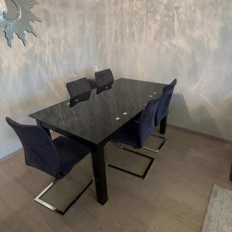 Moderne og pent spisebord med 4 komfortable stoler selges.