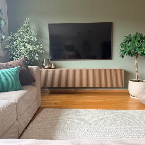 Ikea bestå tv-benk med treknotter og bein i ask.