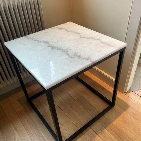 Selger dette lille smykket av et sidebord i Travertin mønster.