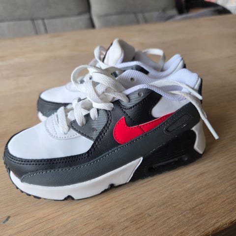 Nike barne joggesko i størrelse 23, designet for unisex bruk. Skoene har en kombinasjon av svart, hvit og rosa farge, med detaljer i mesh og syntetisk materiale for ventilasjon og støtte.