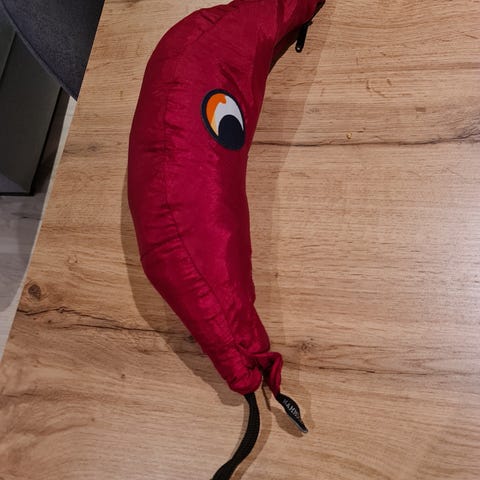 Flott hengekøye som dessverre aldri ble brukt av oss. Den er svart og rød. Bildet i annonsen er lånt fra produsenten sin nettside, da det var vanskelig å ta et uten å henge den opp. Hengekøyen kommer med to kroker til å feste den med.