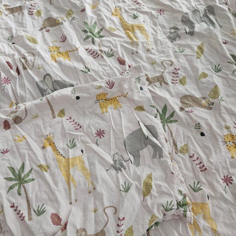 Dyne str 80*100 og to sett dynetrekk og putetrekk. Pent brukt og ingen skader.