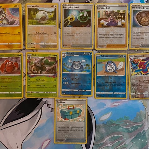 Selger en haug av bulk, er vanlige kort og en hel boks med hollows og reverse. Har også noen ekstra promo kort og ex kort. Kortene er i fin stand. Kortene er fra serien scarlet&violet-journey together- surging sparks-phantasimal flames-mega evolutions-destined rivals-scarlet&violet base set- paldea evolved- twilight masquerade-paradox rift-temporal forces- shrouded fable- obsidian flames- stellar crown-white flare. Sword and shield eraen- vivid voltage- fusion strike- brilliant stars- astral radiance- lost origin- silver tempest. Dette er alle settene i denne bulken.