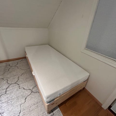 IKEA madrass, brukt, størrelse og andre detaljer ikke oppgitt. Passer til enkeltseng.