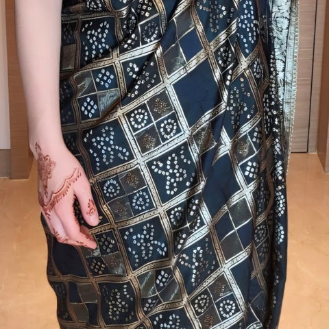 Veldig fin festlig kjole. Passer til flere anledninger. Fargen er pistasj Ser litt annerledes ut på bildene følges med dupata og bukse .