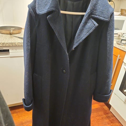 Str 34/36. Merke: Levère of London. Made in England. 75% Ull. Noe slitasje på ermekanter (se bilder).
