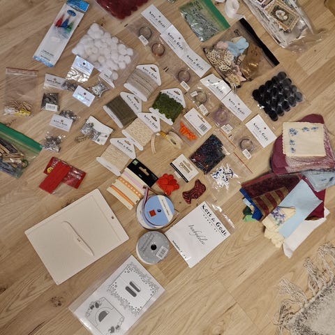 Pakke med ulike hobby- og scrapbooking