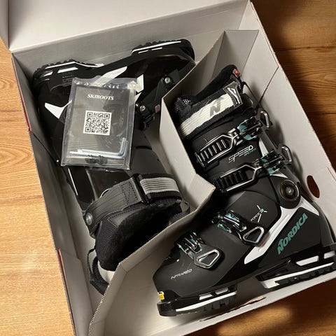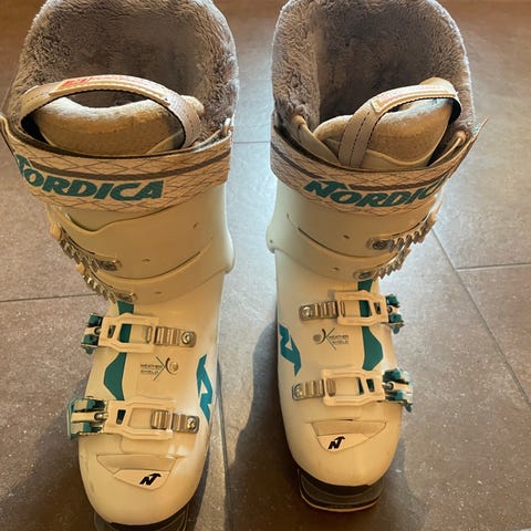 Nordica Speedmachine 3 W 95 alpinstøvler for dame i størrelse 24,5. Selges da de ikke passer og jeg må ha en størrelse større. Helt topp alpinstøvel. Kun brukt to turer i bakken før jeg innså de er for små, som ny. Alt følger med, eske og kvittering om ønskelig. De er ikke tilpasset.